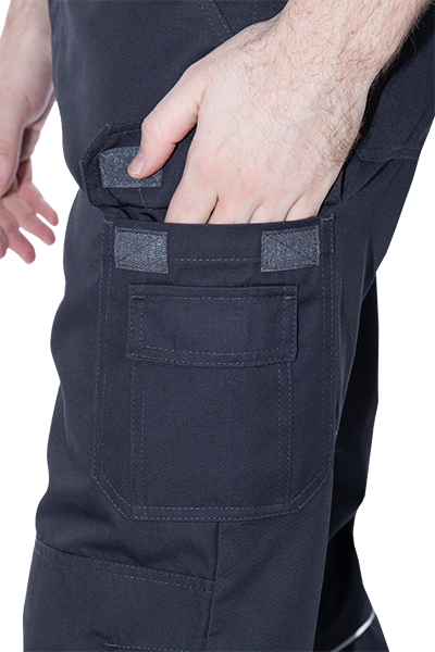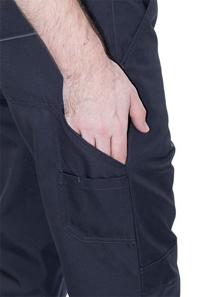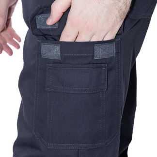 • 6 карманов: 2 боковых с наклонным входом, 2 накладных на задней половинке, 1 карман для инструментов на правом боковом шве, 1 накладной с клапаном на ленте контакт, с малым карманом на левом боковом шве