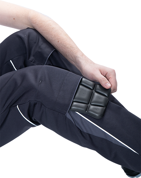 • световозвращающая двухсторонняя лента в виде канта под наколенником, сзади брюк в области подколенной ямки