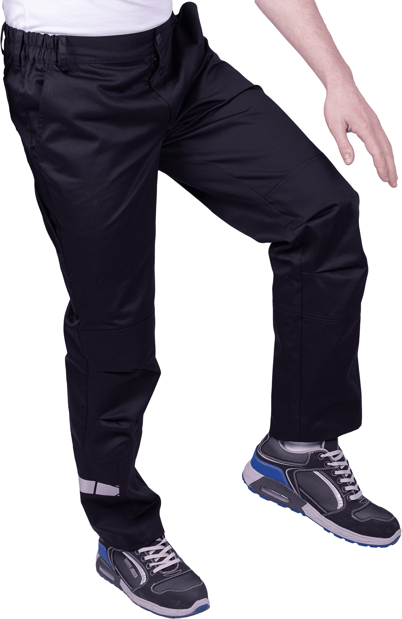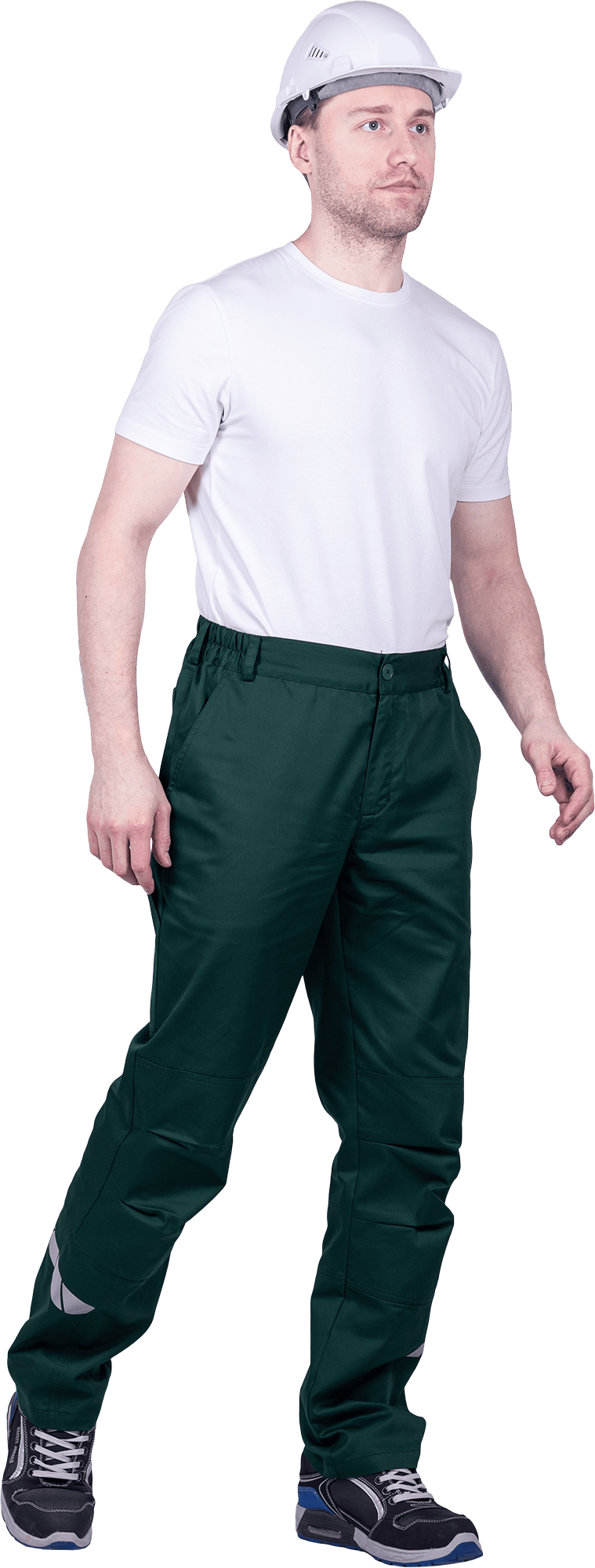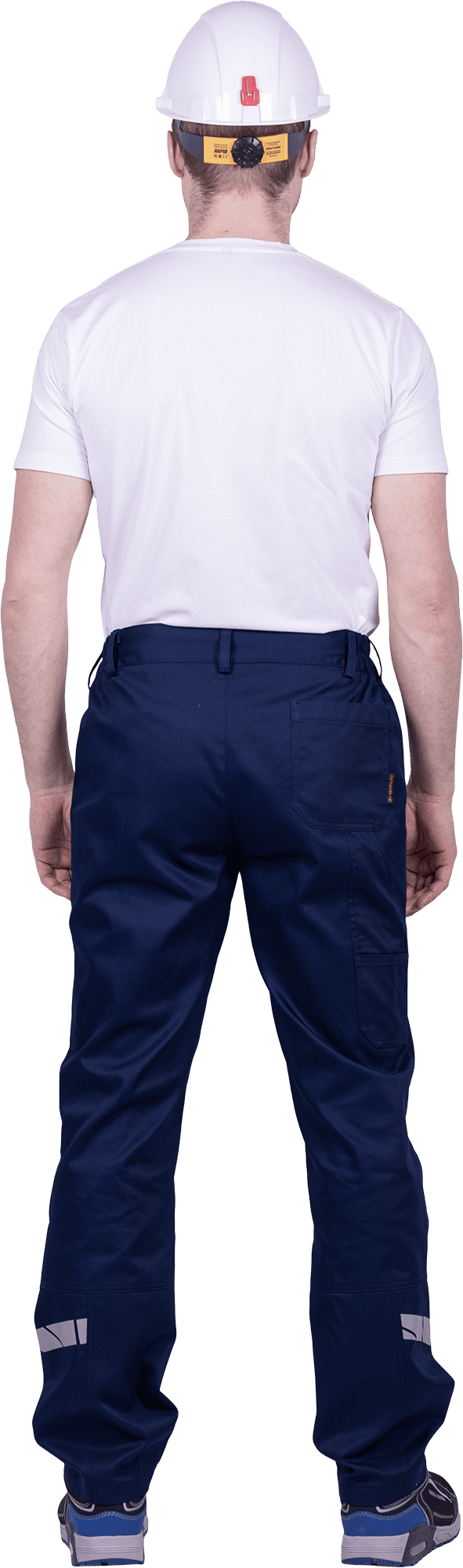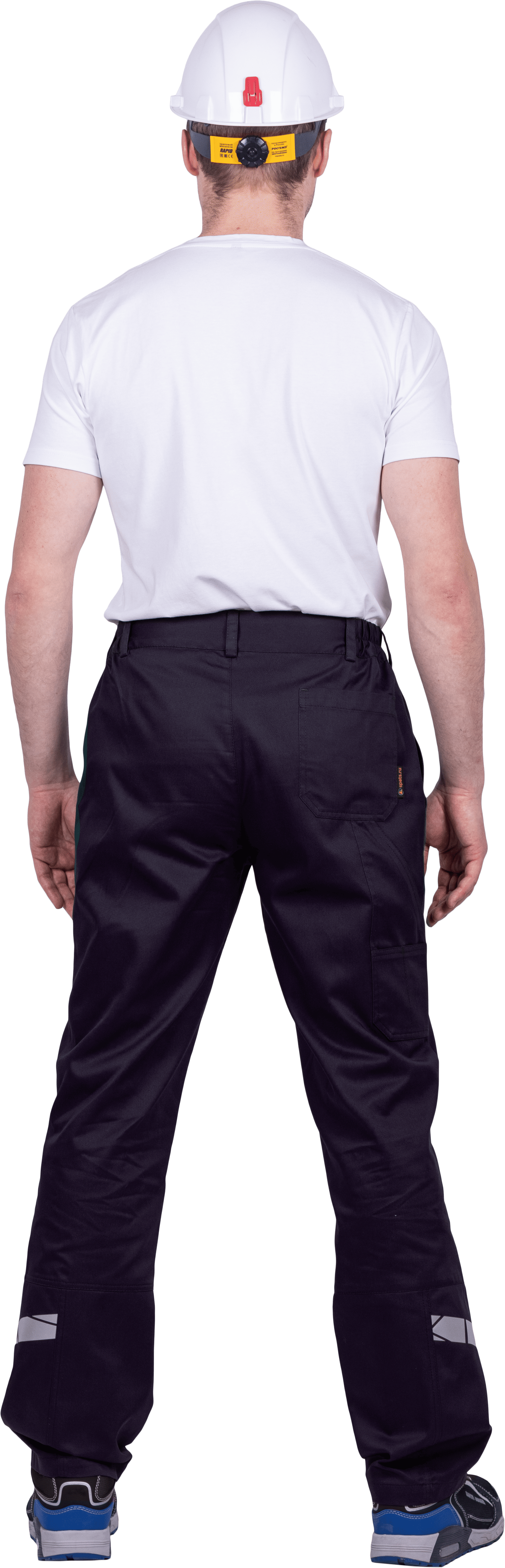 • горизонтальная термоклеевая световозвращающая полоса шириной 30 мм располагается по низу брюк в области боковых швов.