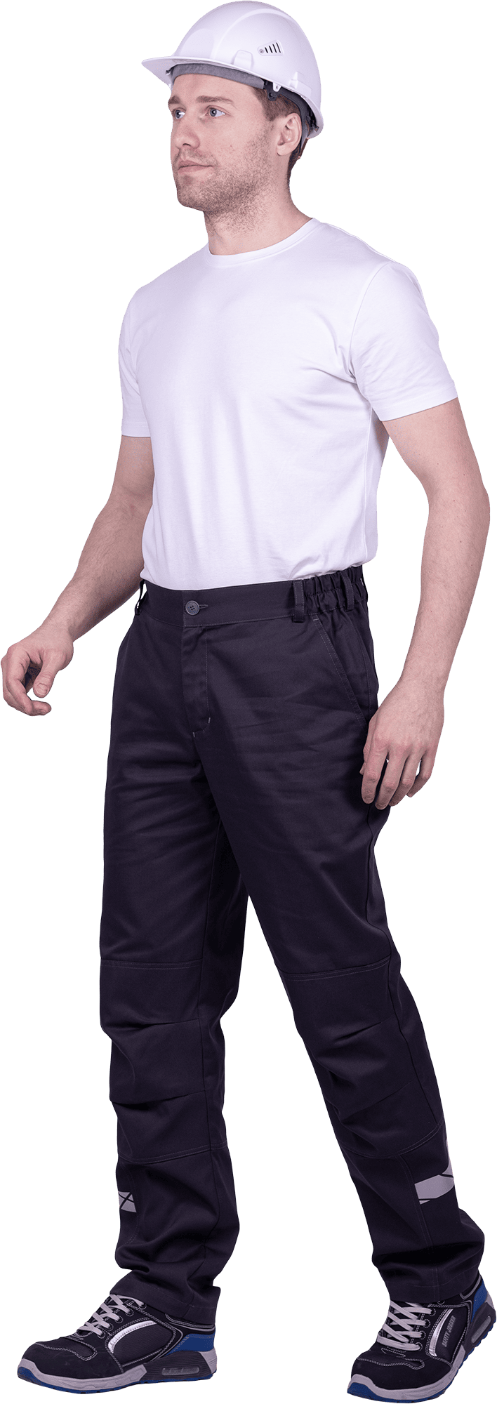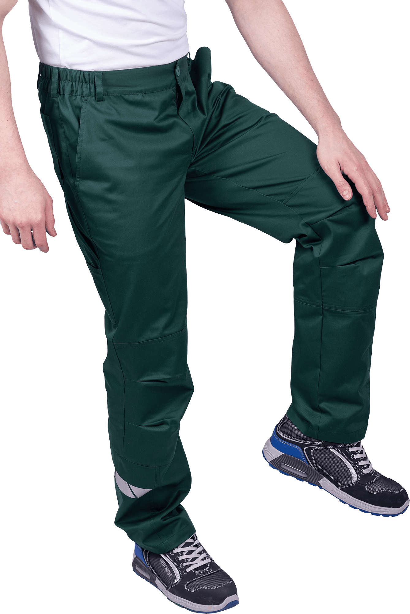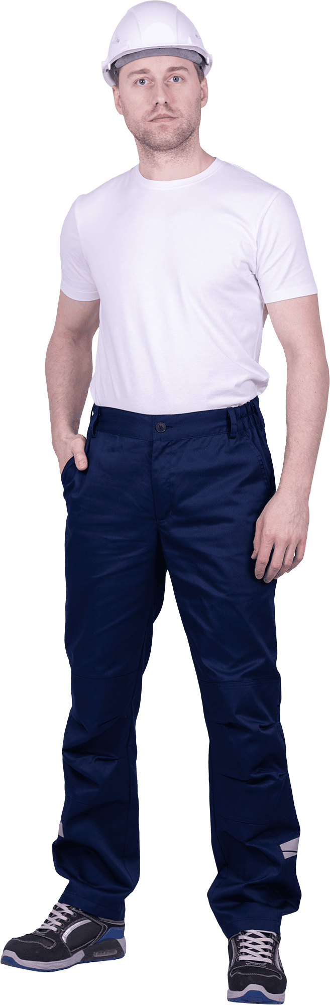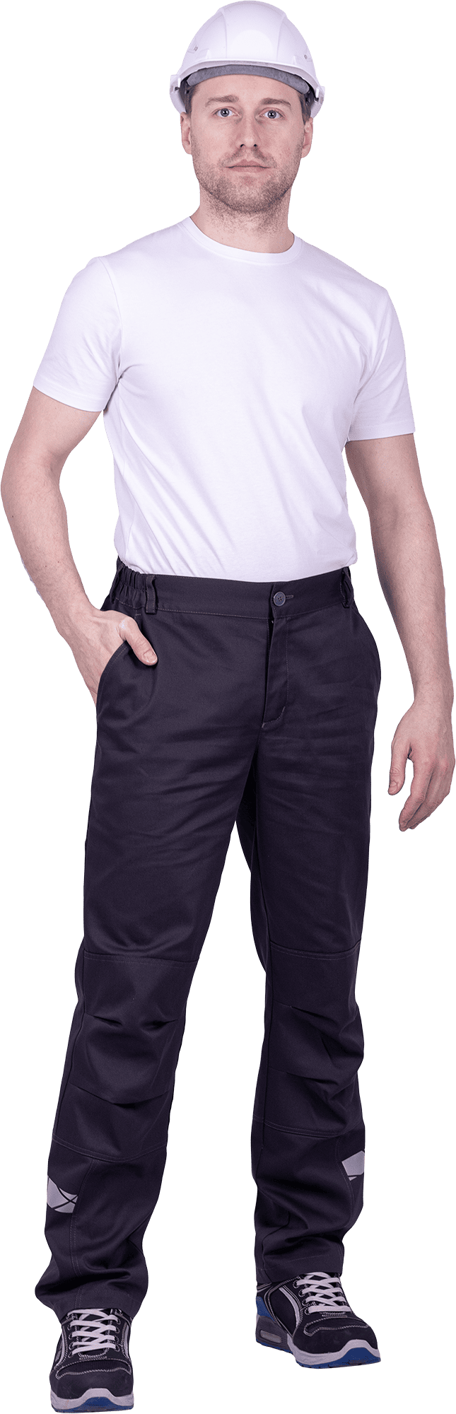 • горизонтальная термоклеевая световозвращающая полоса шириной 30 мм располагается по низу брюк в области боковых швов.