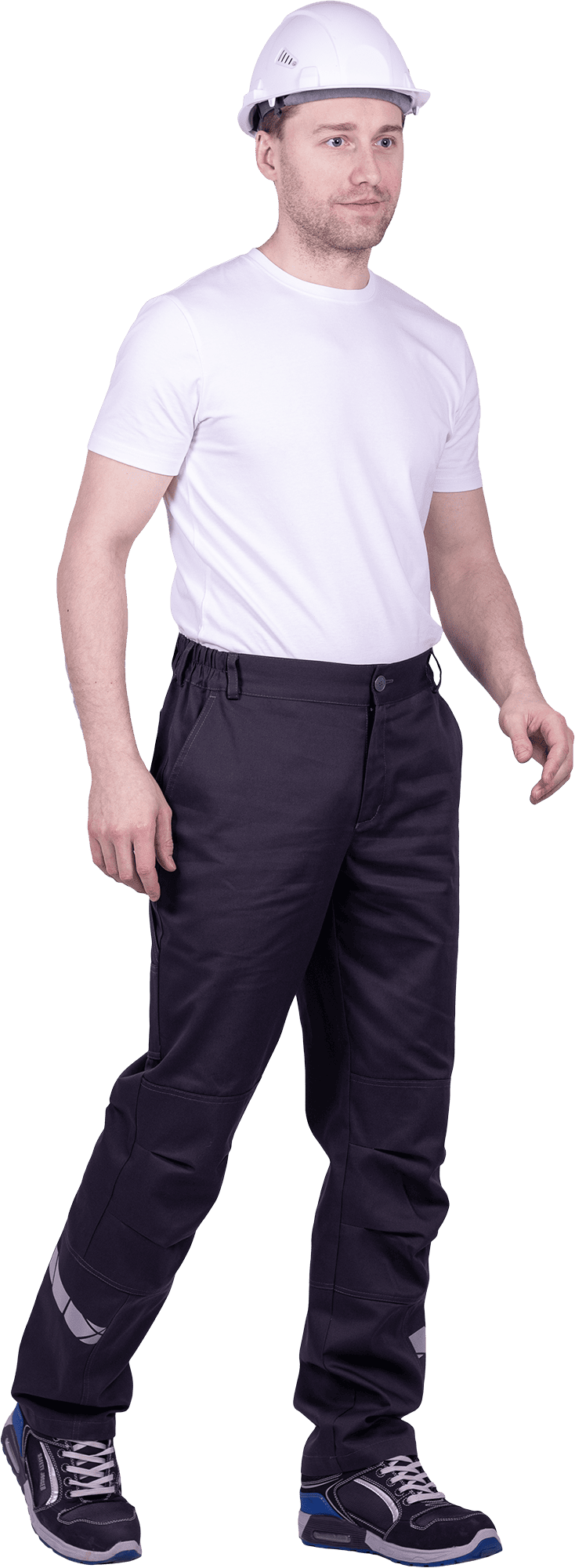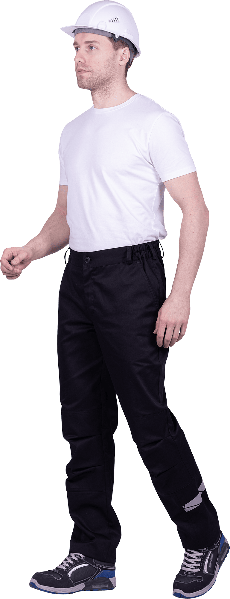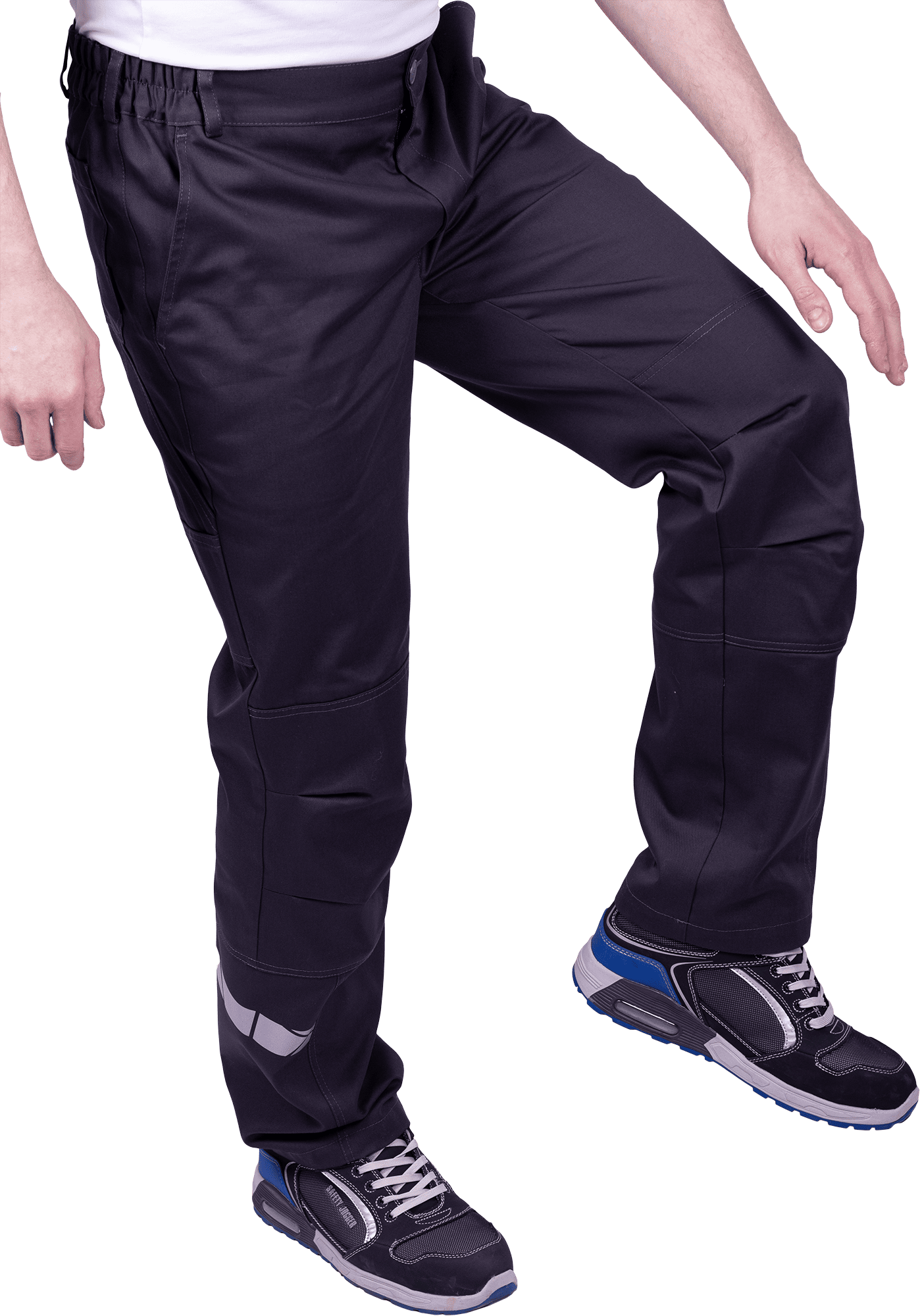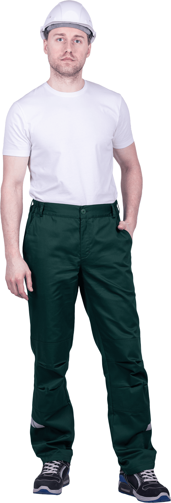 • горизонтальная термоклеевая световозвращающая полоса шириной 30 мм располагается по низу брюк в области боковых швов.