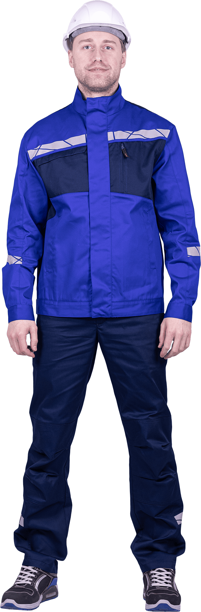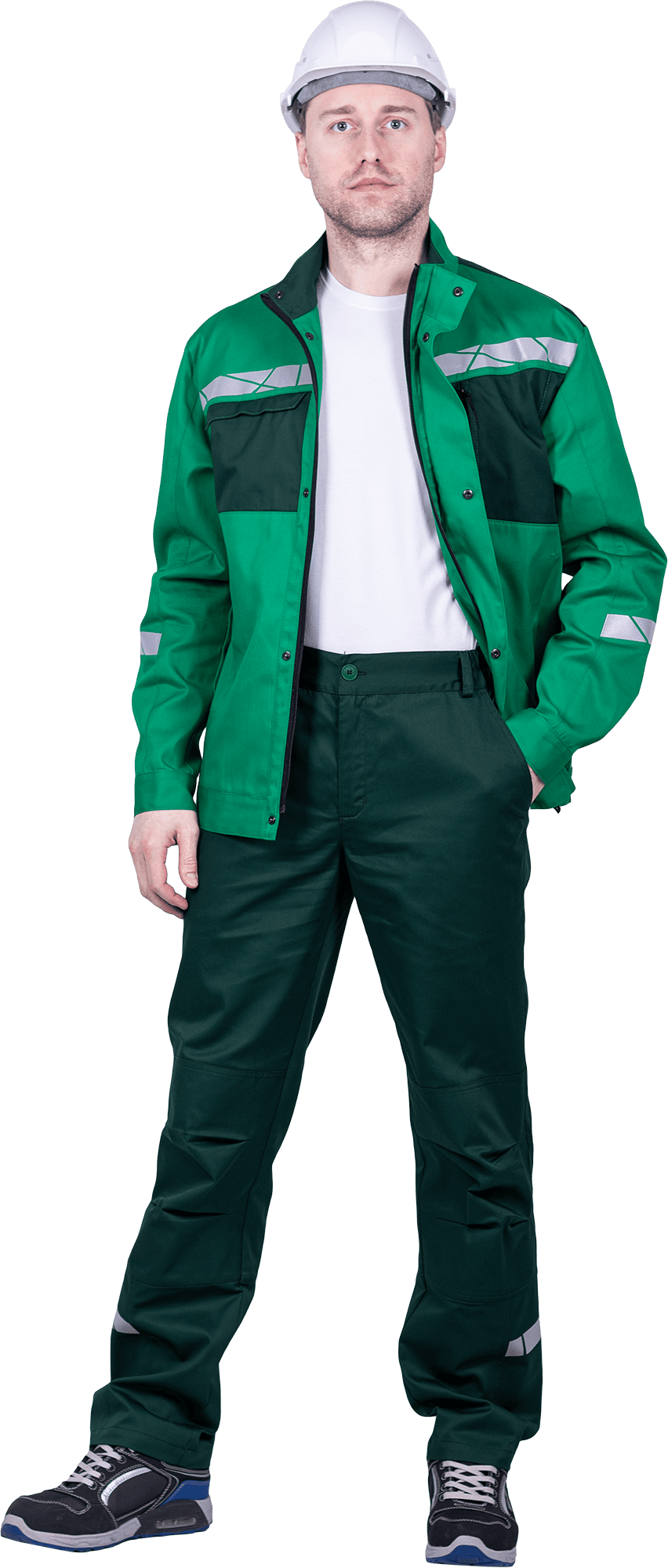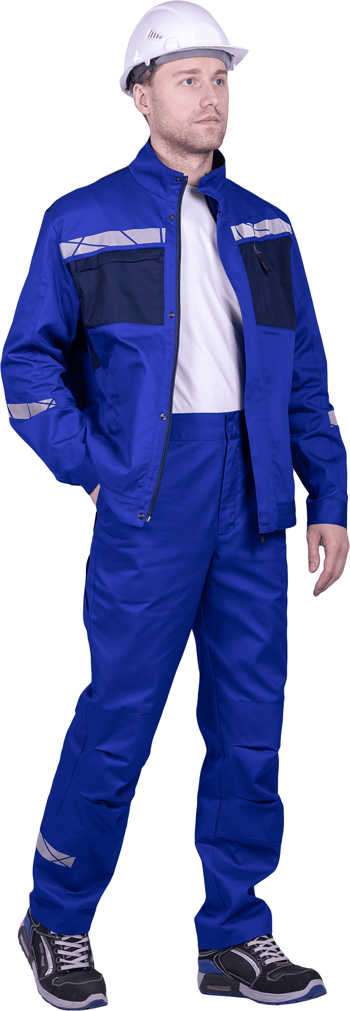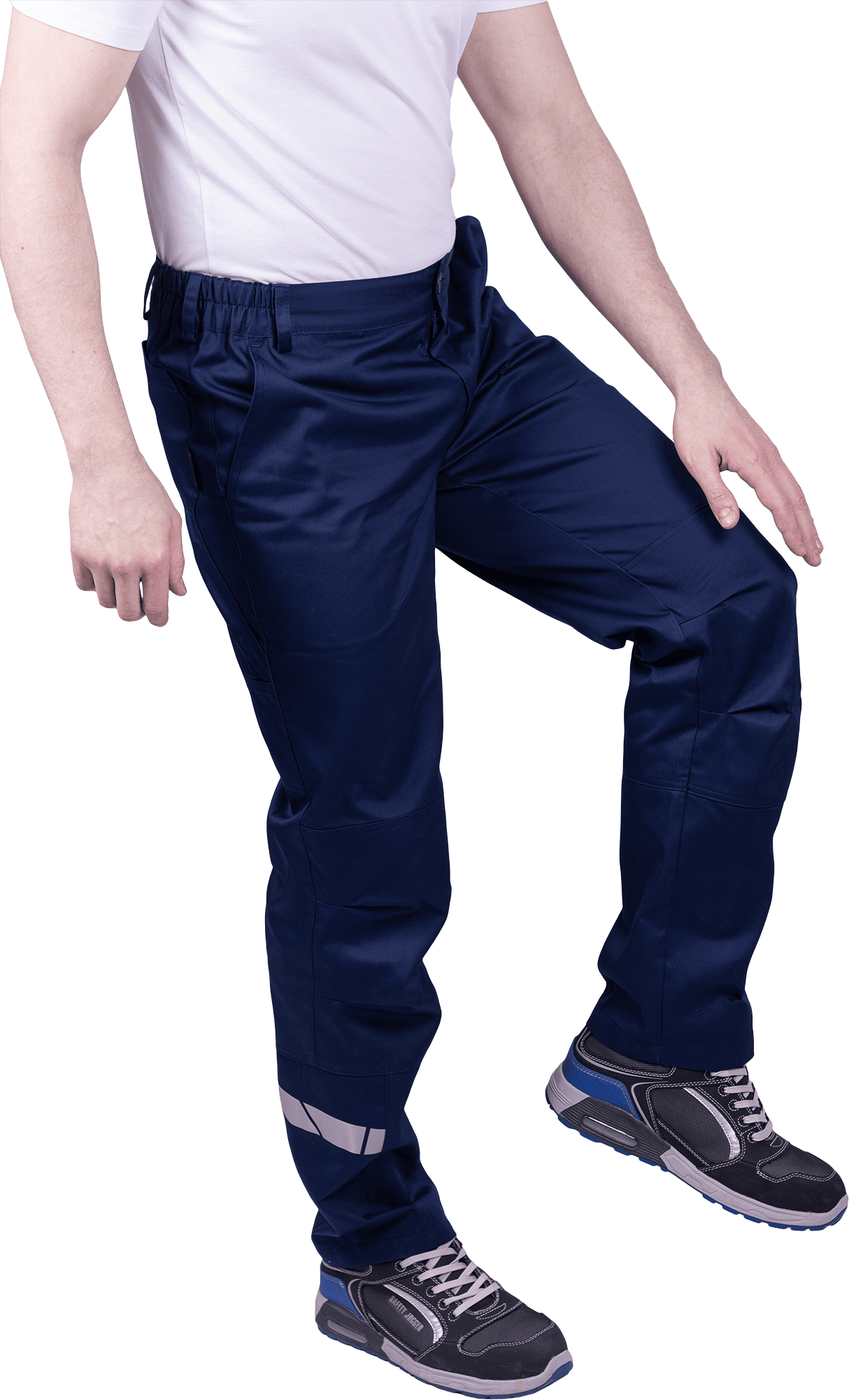 • горизонтальная термоклеевая световозвращающая полоса шириной 30 мм располагается по низу брюк в области боковых швов.