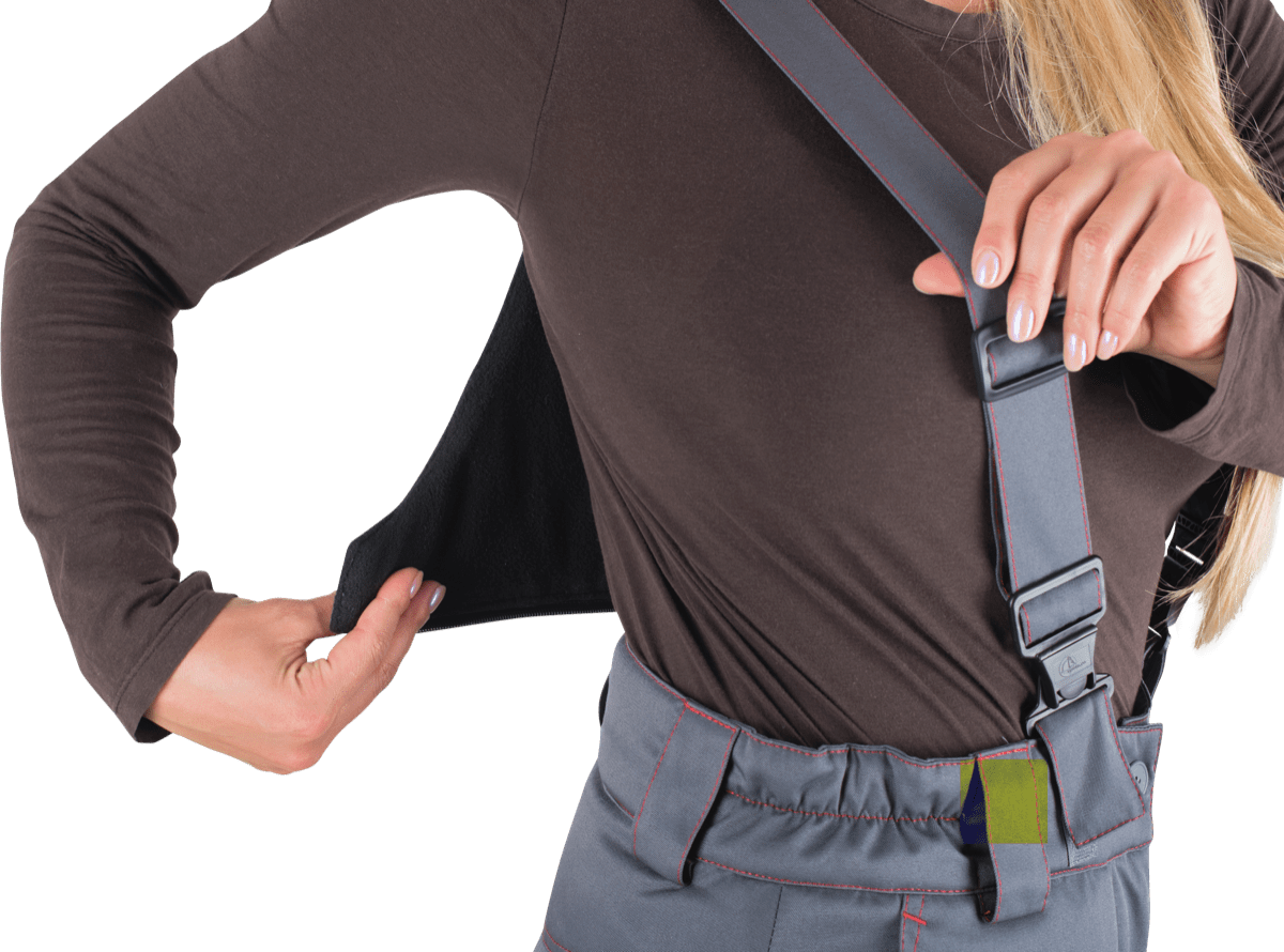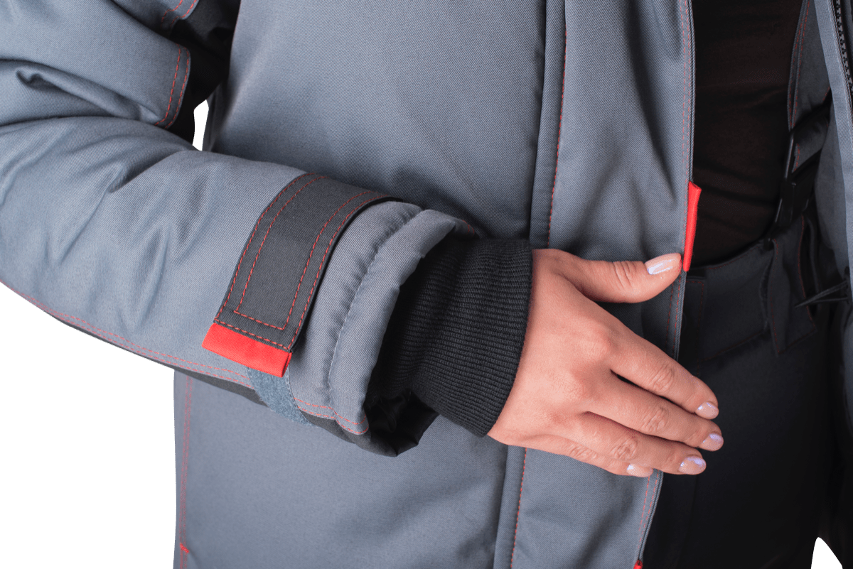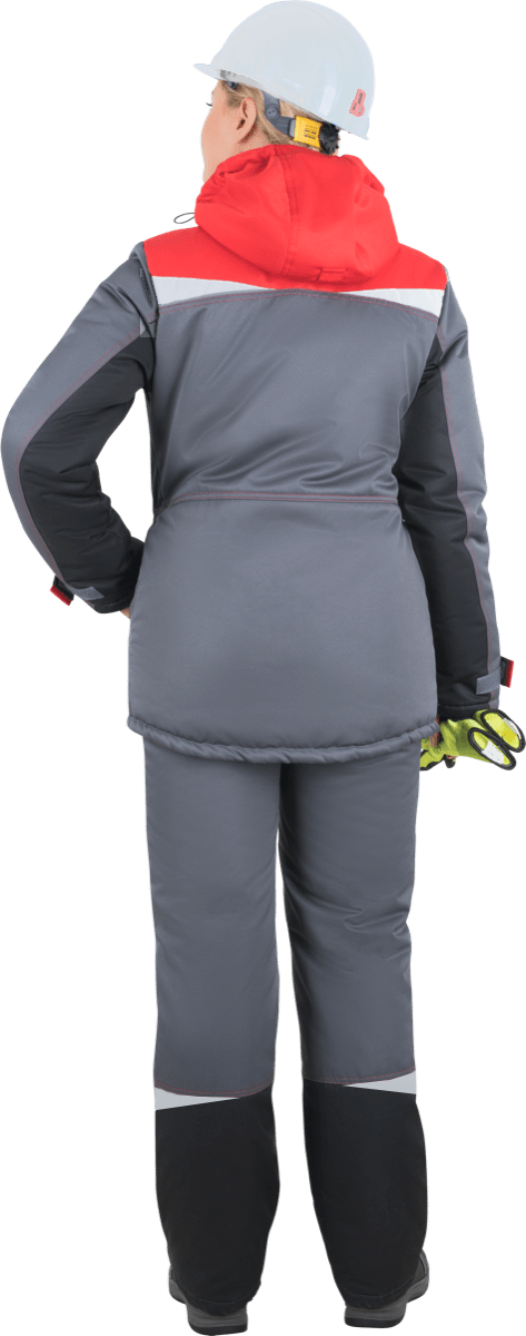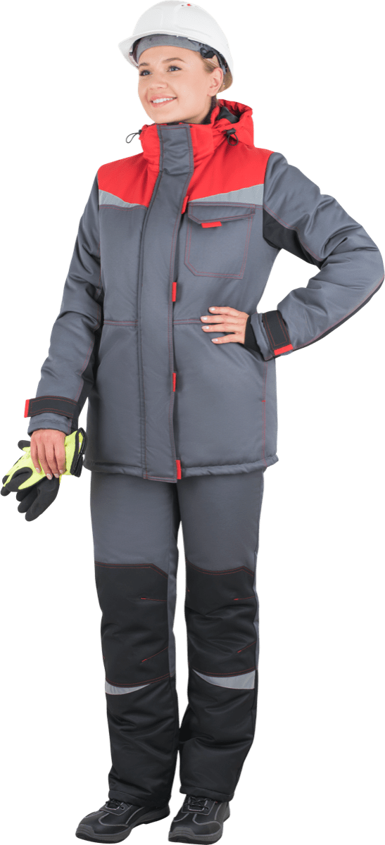 Костюм состоит из куртки и брюк. В костюме используются световозвращающие