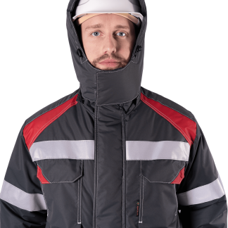 • съёмный капюшон с расширенной подбородочной частью с застежкой текстильной, с регулировкой объёма