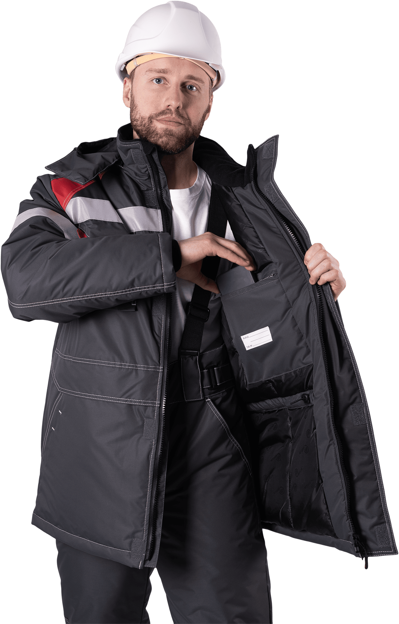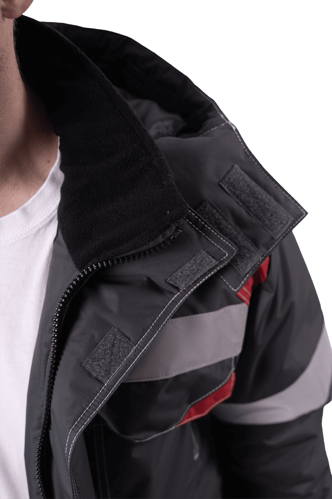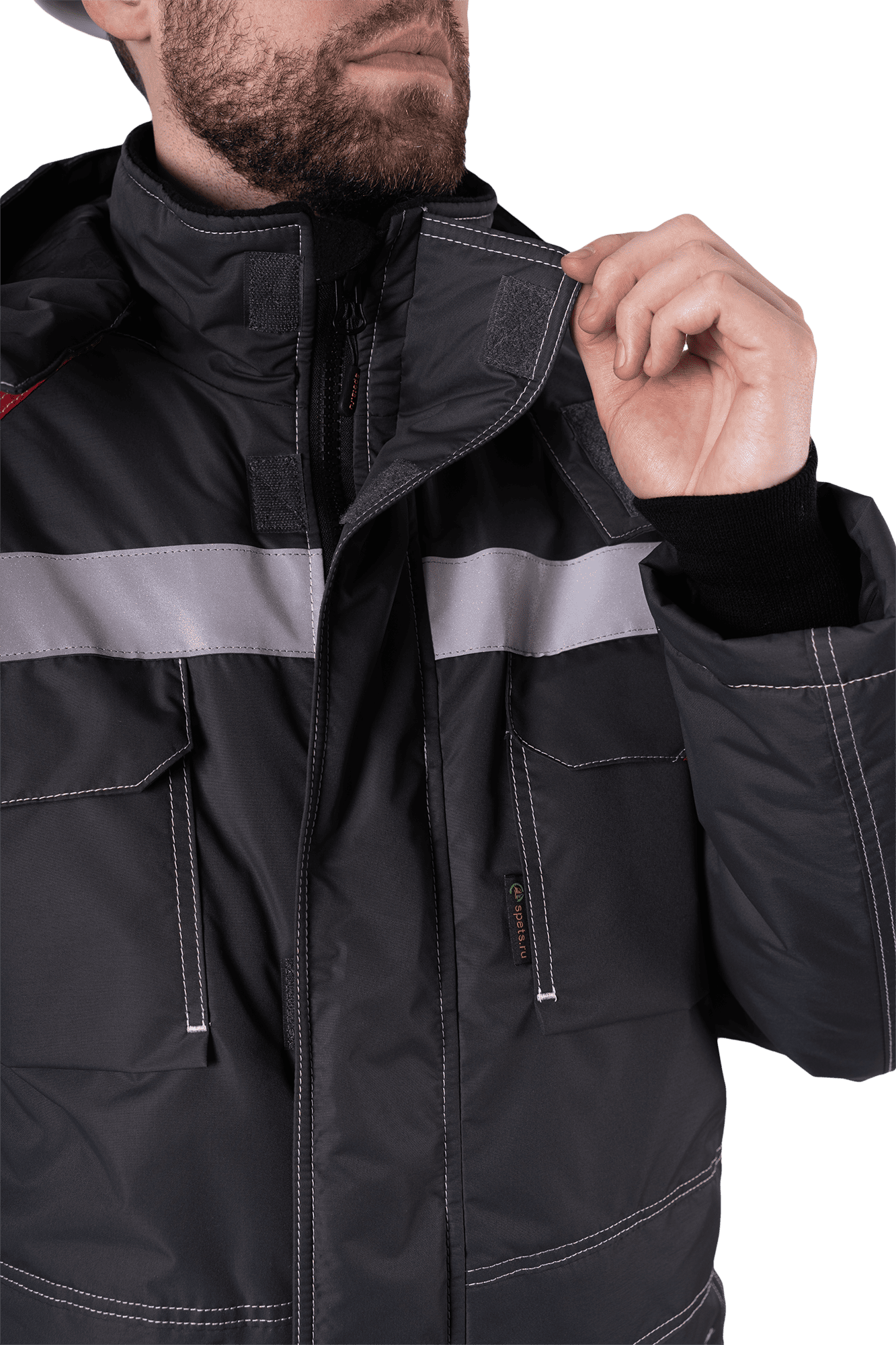 • световозвращающие полосы шириной 50 мм по кокеткам полочки и спинки и рукавам