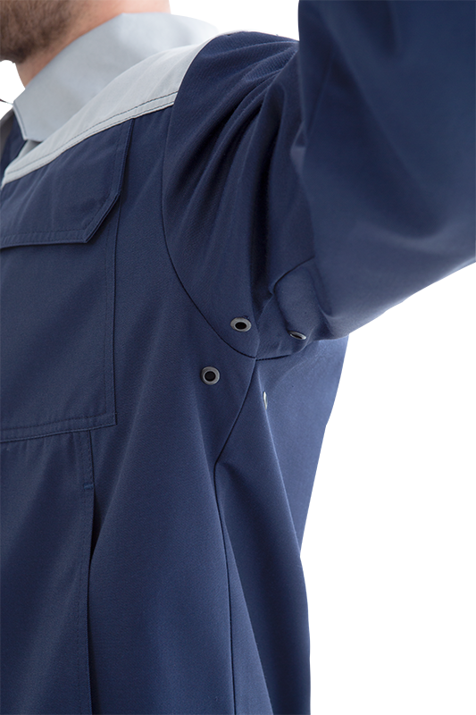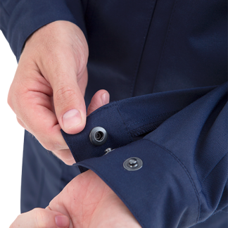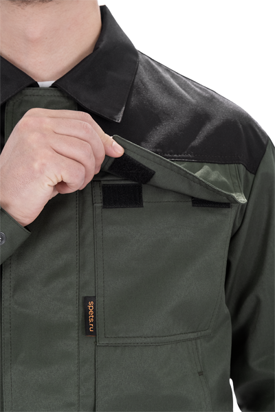 • рукава двухшовные с разрезами в локтевом шве и с манжетами, застёгивающимися на кнопки