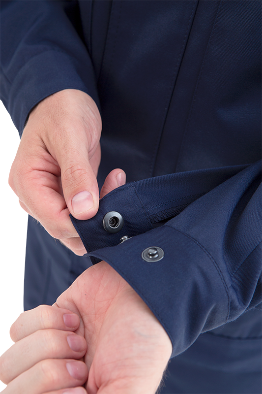 • притачной пояс с патами в области боковых швов для регулирования ширины куртки по низу