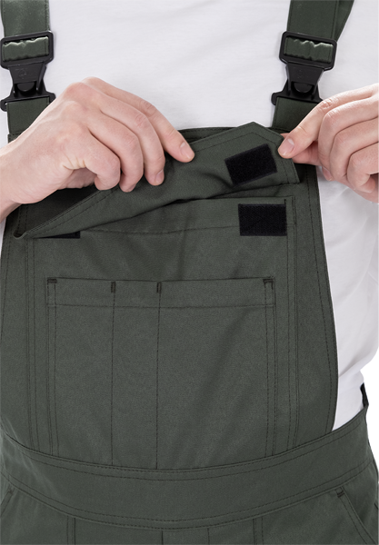 • накладной карман на нагруднике с дополнительным карманом, разделенным на секции, и клапаном