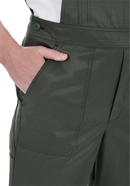 • накладные карманы на передних и задних половинках полукомбинезона