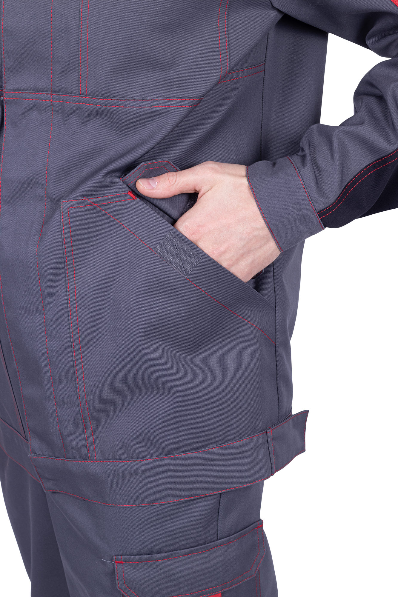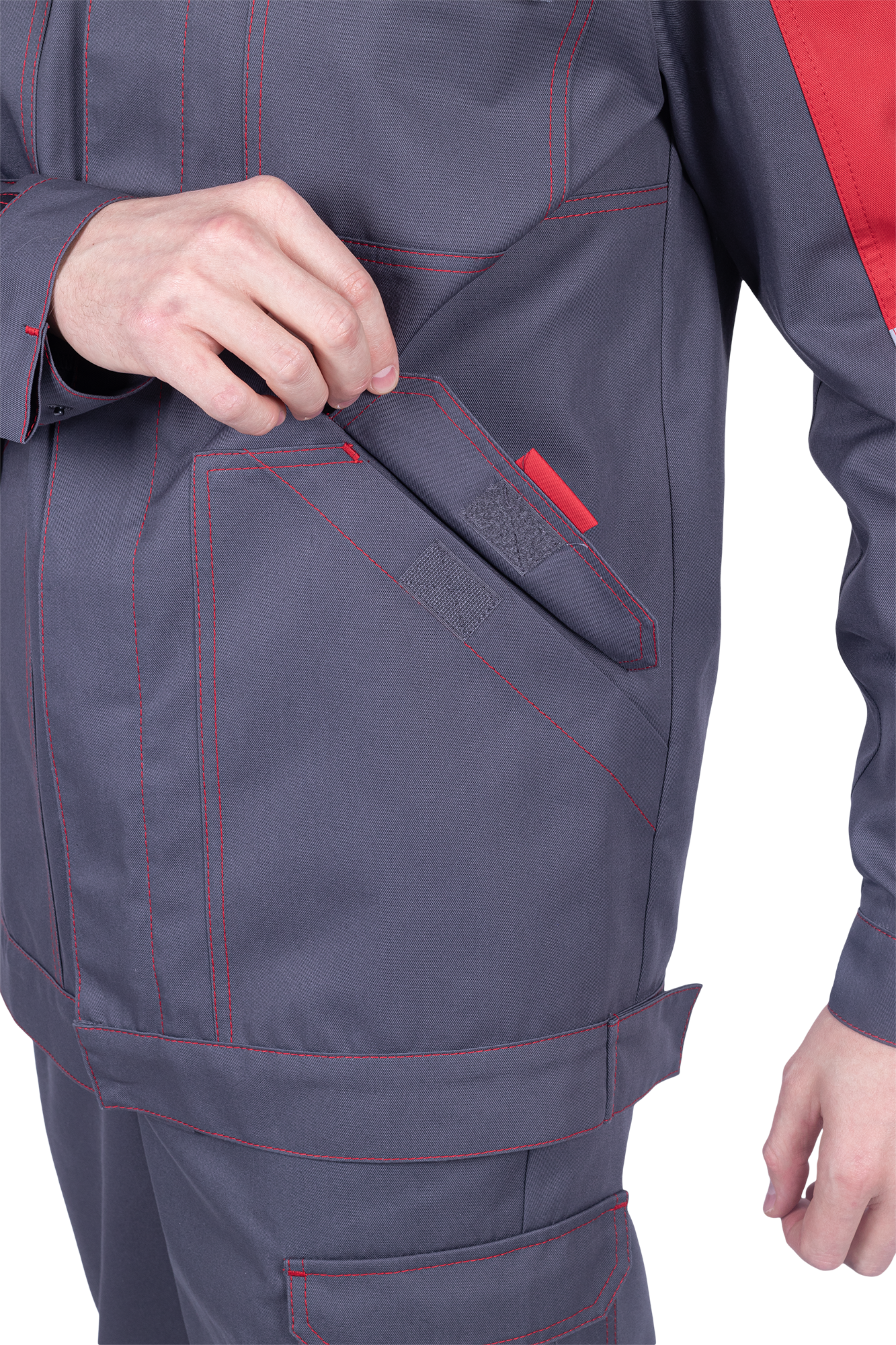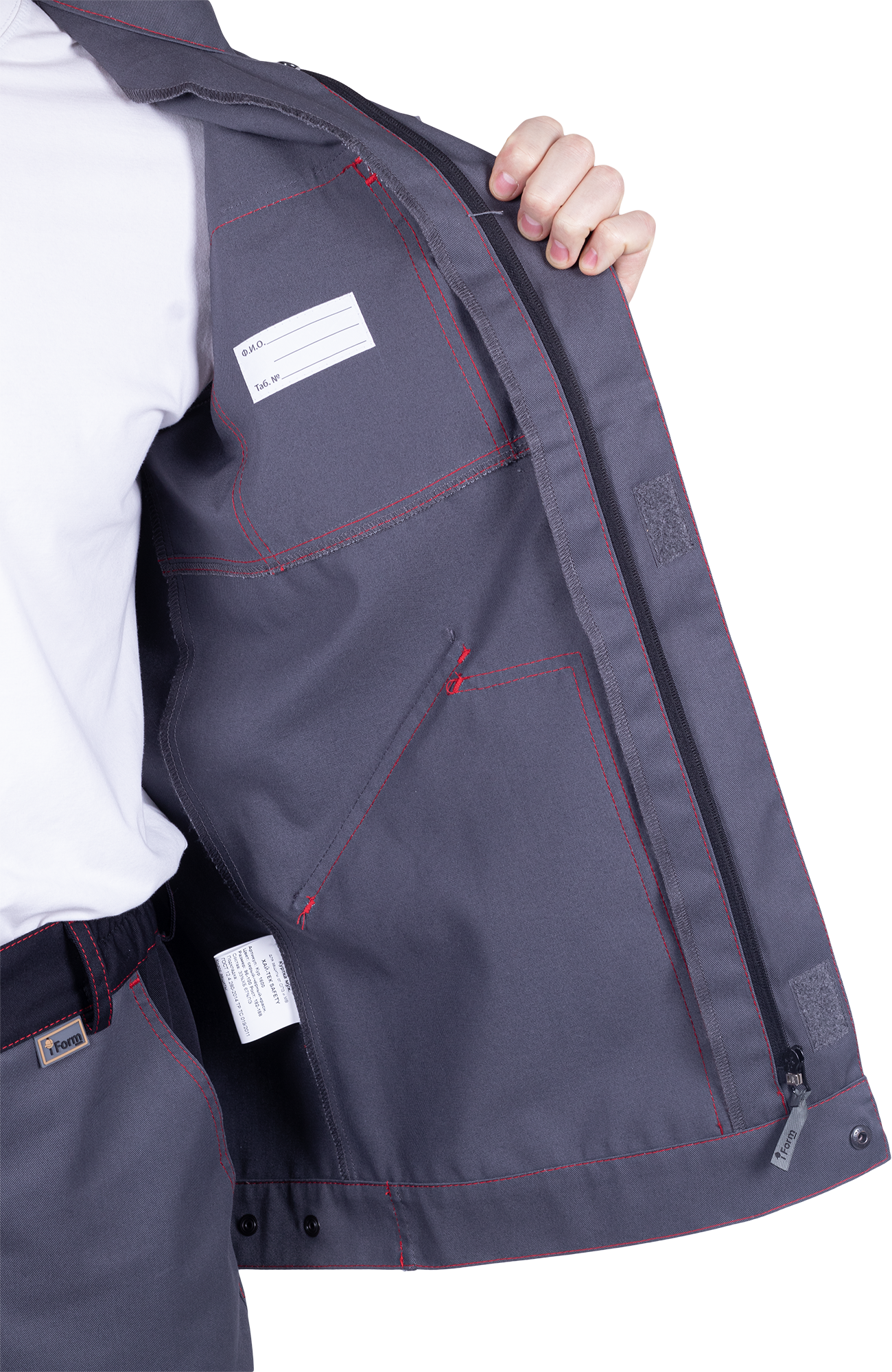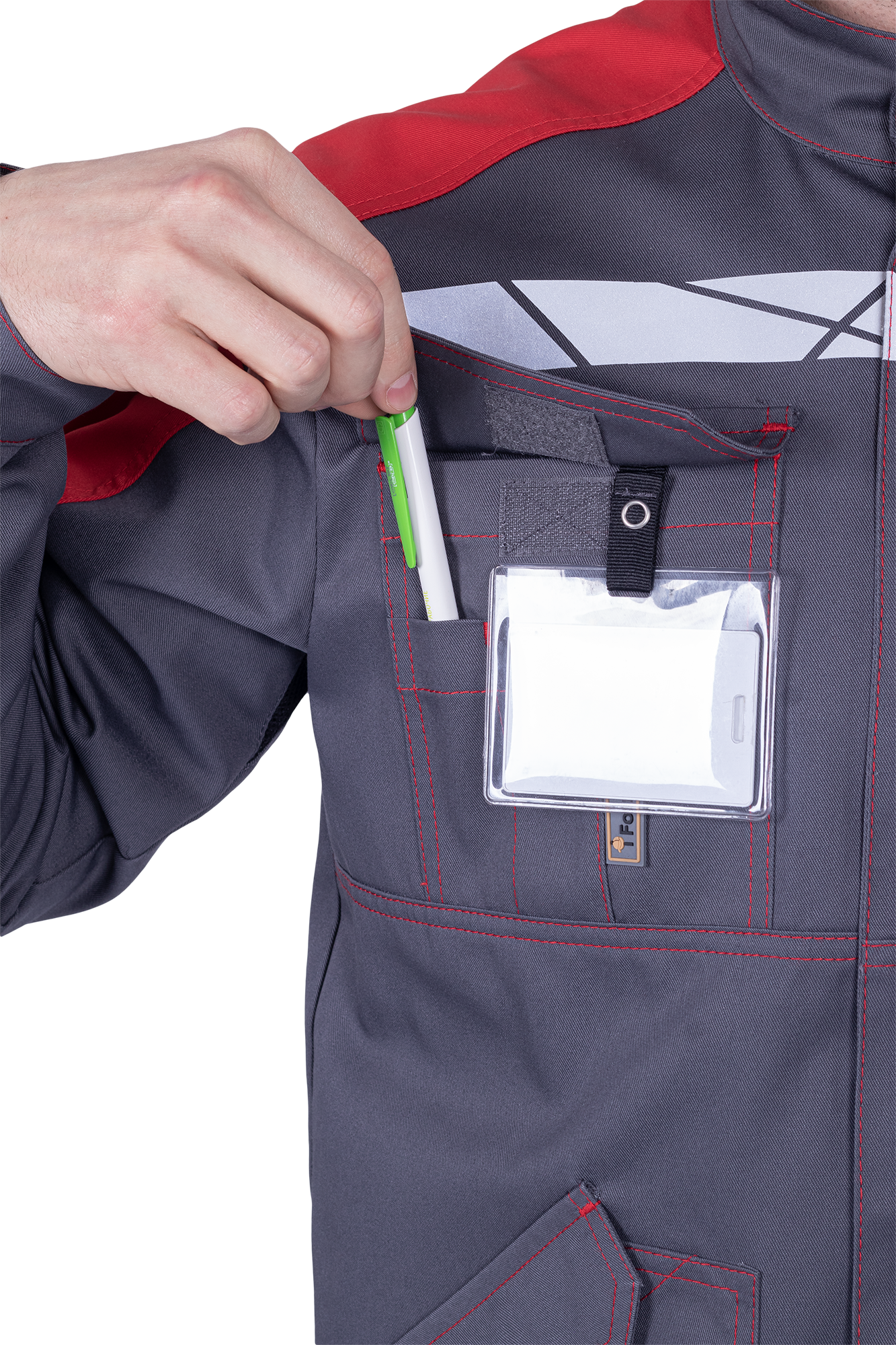 • в правом нагрудном кармане под клапаном петля на кнопке для крепления бейджа
