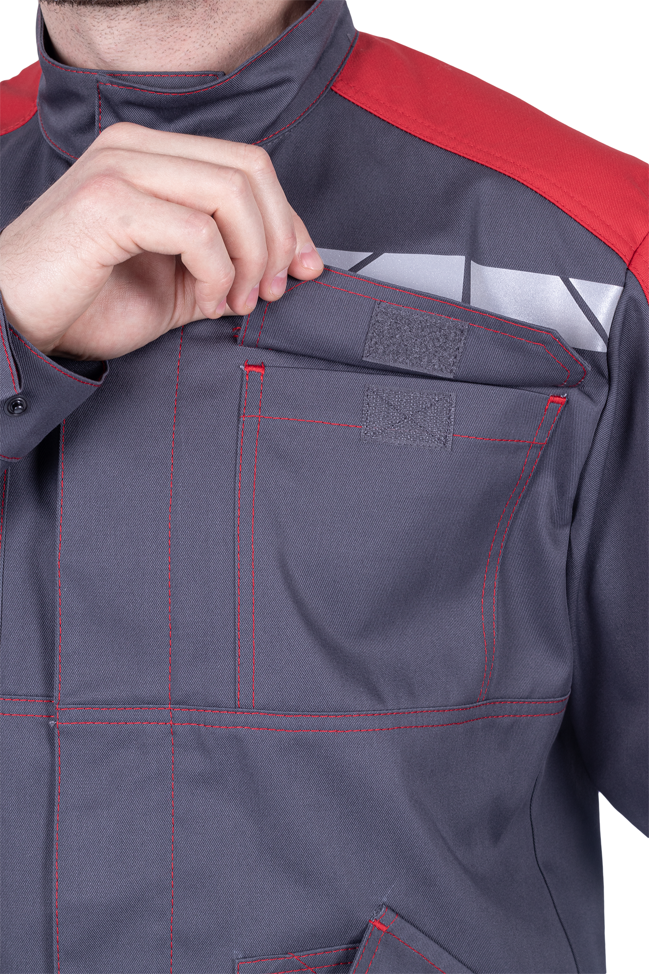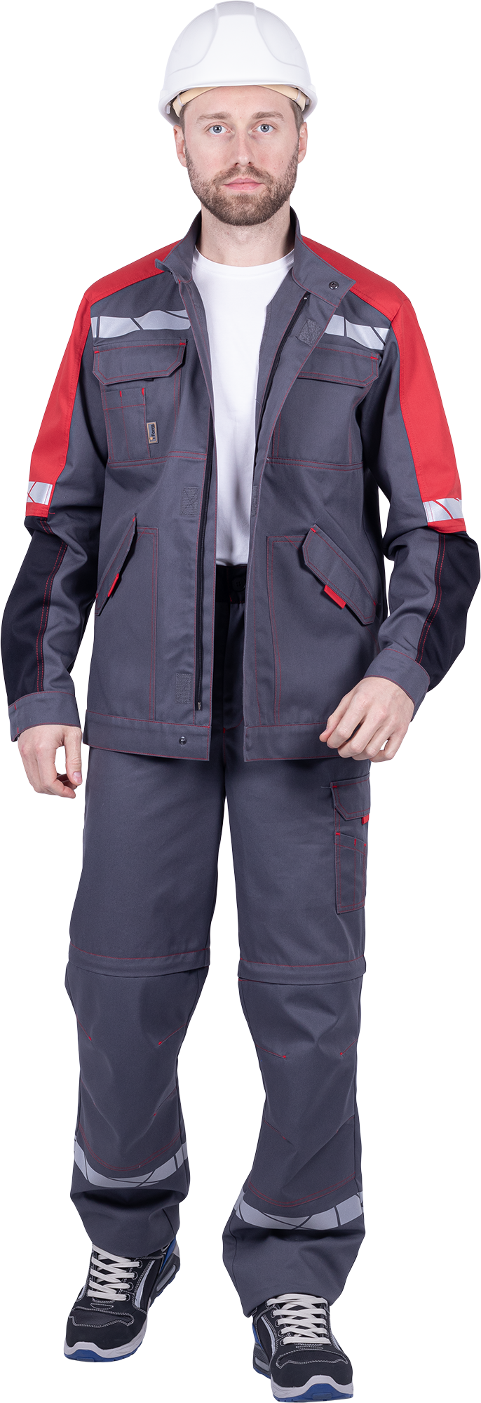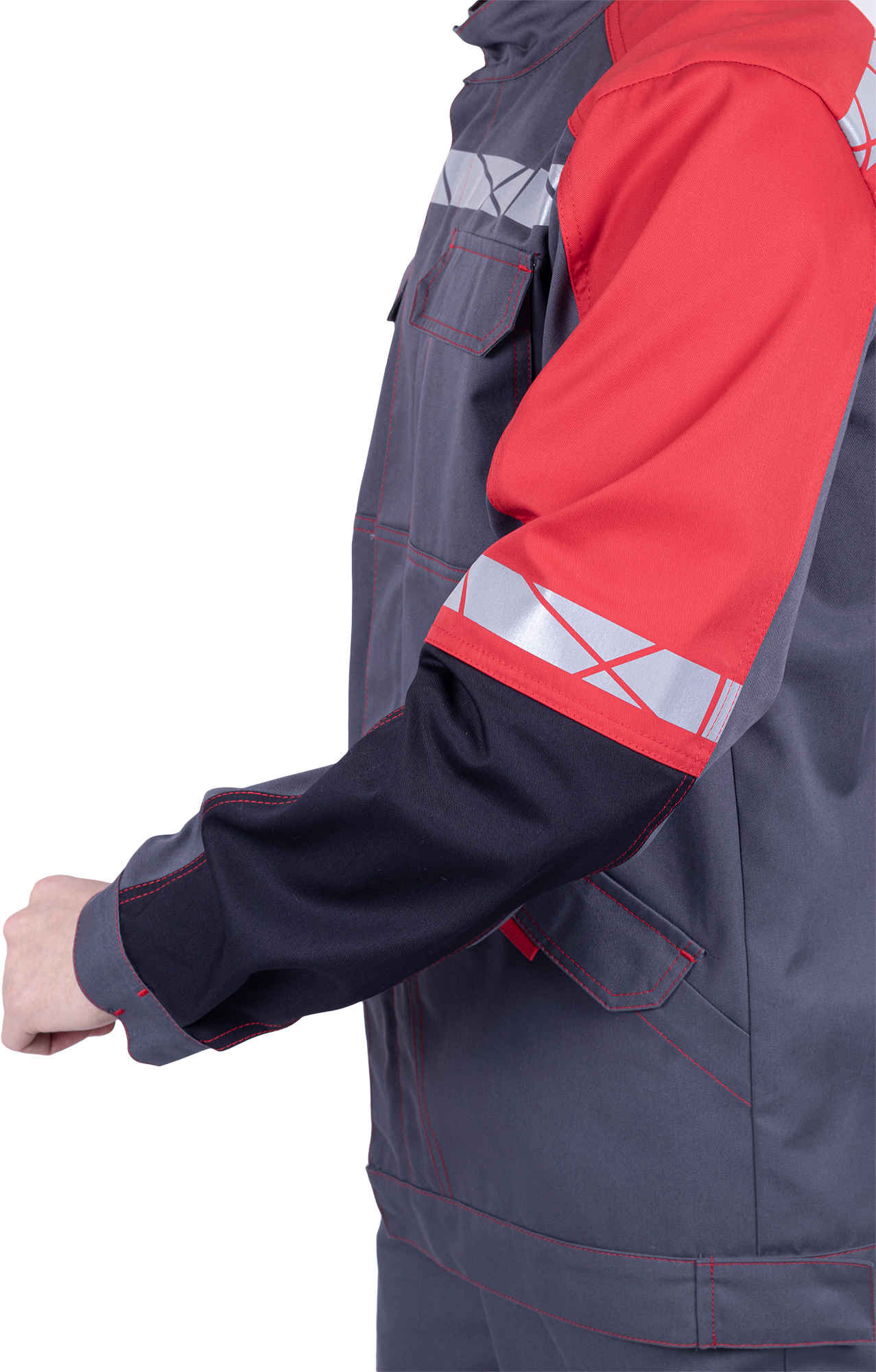 • по кокеткам полочки и спинки, на рукавах термоклеевая световозвращающая лента шириной 30 мм