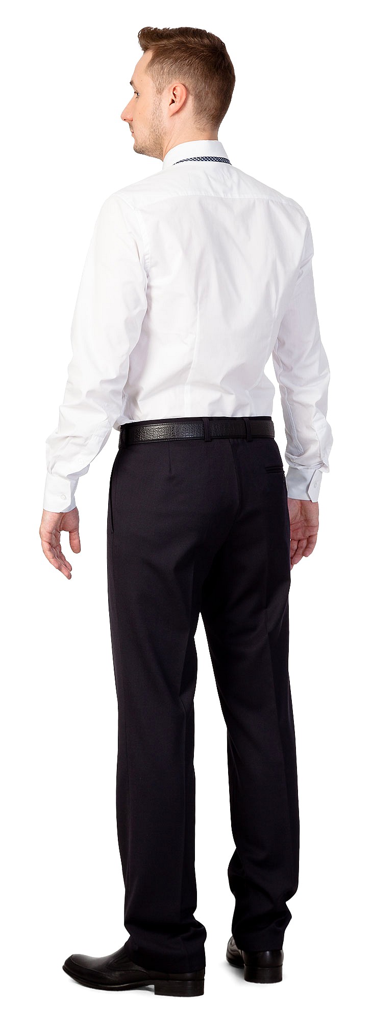 Сорочка мужская приталенная с вытачками на спинке, с застежкой на пуговицы, с фигурным низом. Воротник отложной со стойкой.