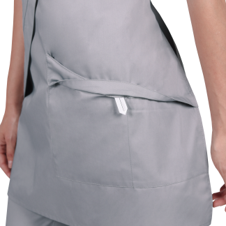 • накладной карман фигурной формы с петлей для бейджа на нижней части, разделен на две секции